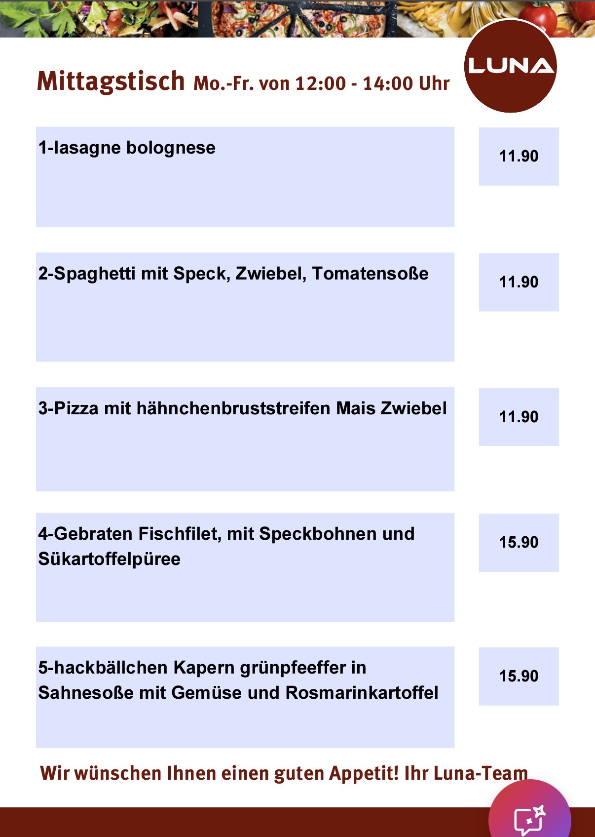 Wir haben ein Herz für Tiere: Auch Haustiere sind willkommene Gäste. Gerne nehmen wir Ihre Reservierung entgegen. Freuen Sie sich auf einen wundervollen Aufenthalt mit tollem Flair in unserem Restaurant. Nehmen Sie direkt Kontakt zu uns auf – per Telefon unter +490406535749 oder E-Mail unter Restaurantluna@gmx.de. Sie können bei uns problemlos per VISA, Apple Pay, MasterCard, AMEX, kontaktlosem Bezahlen oder Debitkarte zahlen. Natürlich akzeptieren wir auch eine Barzahlung. Wenig Zeit? Dann bestellen Sie Ihr Essen doch einfach zum Mitnehmen. Auch private Feiern sind bei uns kein Problem – einfach melden.